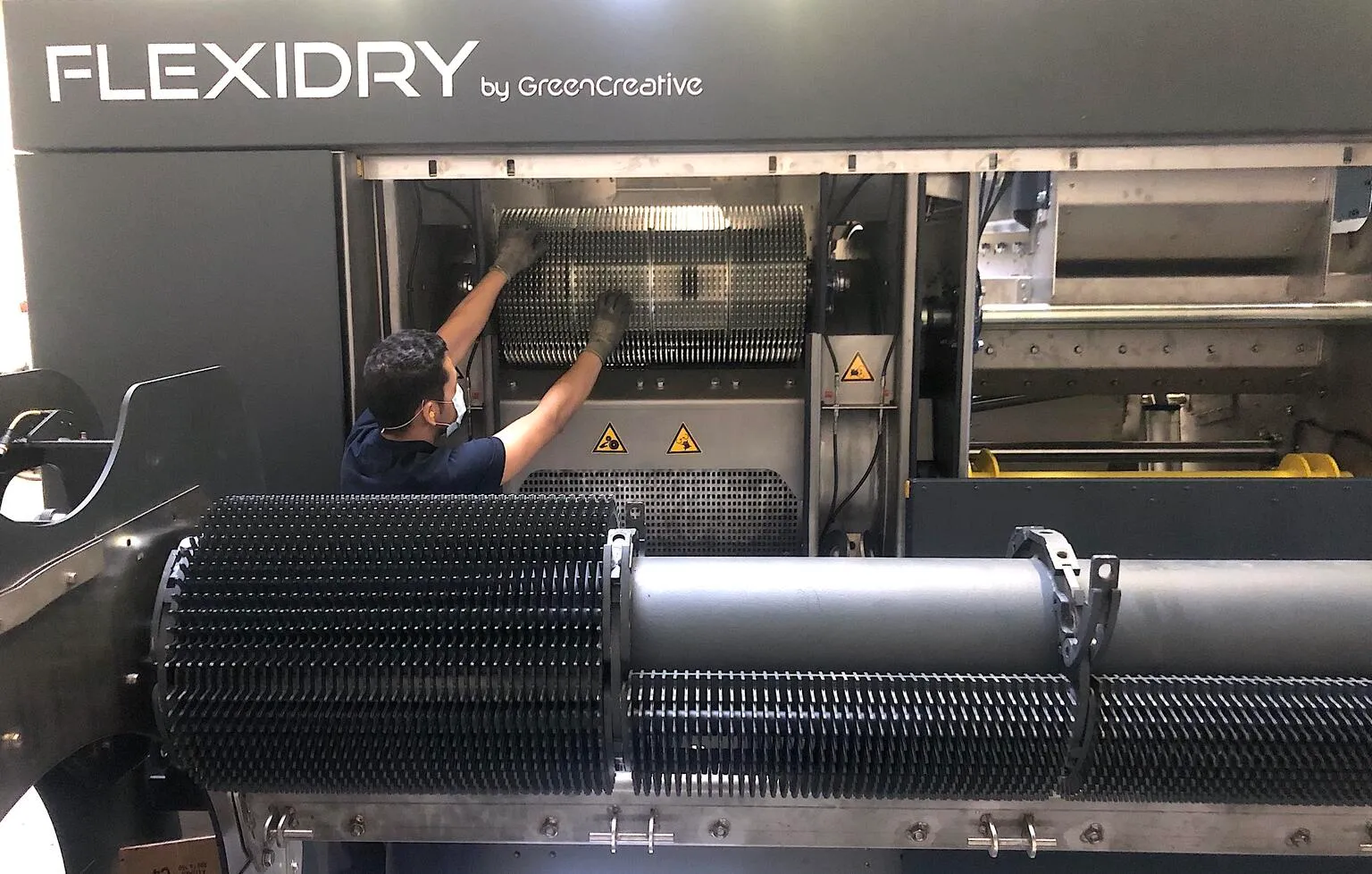 En quoi la facilité de maintenance est-elle au cœur de la conception de FLEXIDRY M ? Le constat de la V2, notre ancien modèle était que les temps d’arrêt liés au nettoyage et aux entretiens étaient trop importants. Le réagencement global de la machine a permis de diminuer au maximum ces temps d’entretien journaliers, les temps de maintenance à la semaine et les temps de révision.